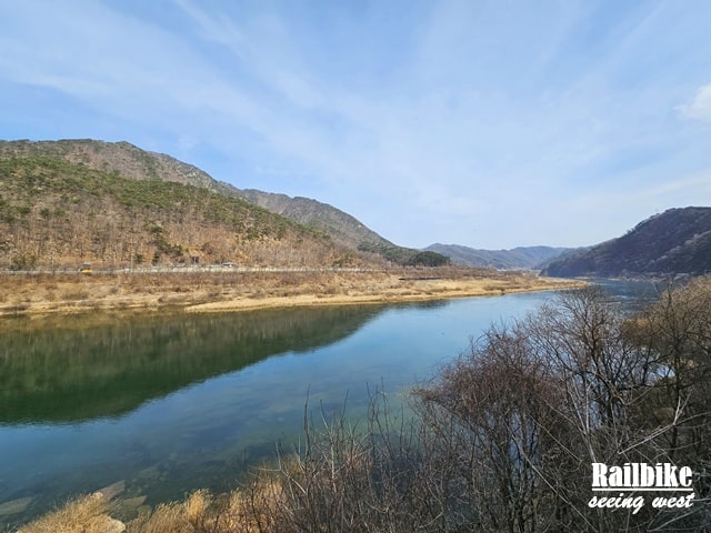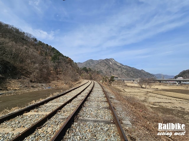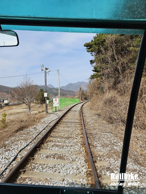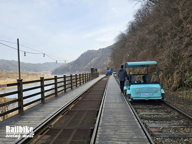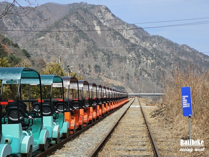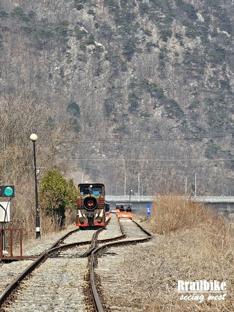 金裕貞站路線是最熱門的一段,全長約8公里,分為兩段。第一段需親自踩踏,穿越山林、隧道與江邊,途中設有燈光特效和音樂的“隧道秀”,略帶娛樂感,適合家庭與朋友同行。第二段則由小火車接駁至終點站,旅程舒適不吃力。沿途景觀以自然為主,春天新綠,秋天滿山紅葉,踩著節奏感十足的鐵軌聲,極富情調。