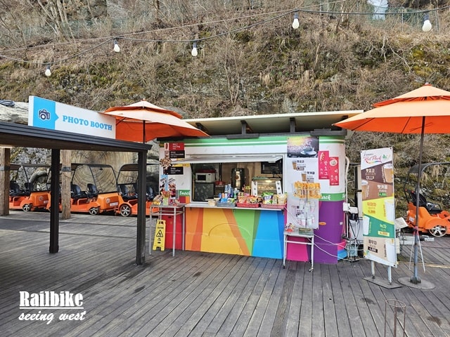 「Nanggu 村」就是讓遊客下自行車後等待浪漫列車的地方,有小食亭還有PHOTO BOOTH售賣騎車時拍的照片,只需7000won,價錢便宜便跟朋友一人一張。