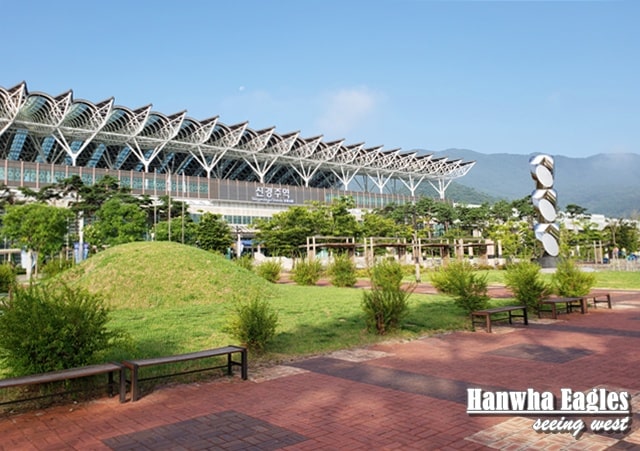 晨早出發,早上七點就到達新慶州站,預備搭KTX到大田。新慶州站幾新幾美觀,前面有個小山丘就像慶州特色陵苑,不知是真是假。。。