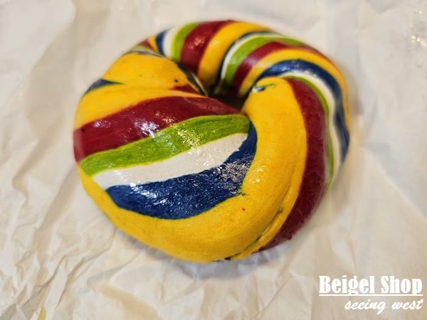 至於彩虹貝果嘛,其實就是顏色搶眼,味道沒有特別好吃,不過只需一磅很便宜,而且最近萬聖節有出橙色南瓜版本。