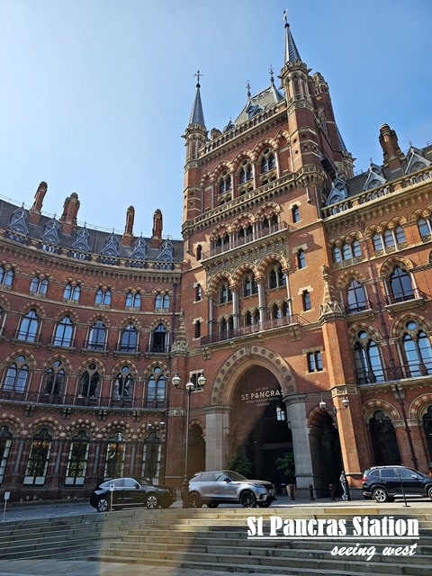 St Pancras Station 外觀,倫敦著名火車站與酒店結合建築,擁有哥德式紅磚外牆及拱門設計,是影婚紗照與電影場景熱點。