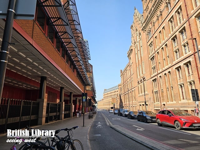 左邊是 British Library,右邊是 St. Pancras Station。據稱大英圖書館的紅磚牆是呼應旁邊的車站,而建造紅磚牆的1000萬塊磚頭跟 St. Pancras Station 都是由李斯特郡。