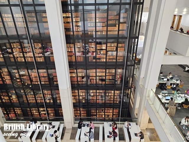 然後是圖書館最矚目的打卡位,King’s Library Tower,當年國王喬治三世留下來的私人藏書,整齊陳列於六層樓高的透明空間中,站在旁邊已經覺得自己多了書卷味。
