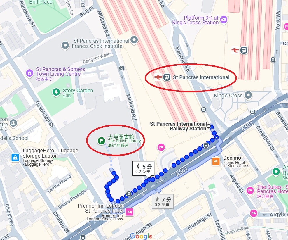就在St. Pancras Station 旁邊,步行只需5分鐘。