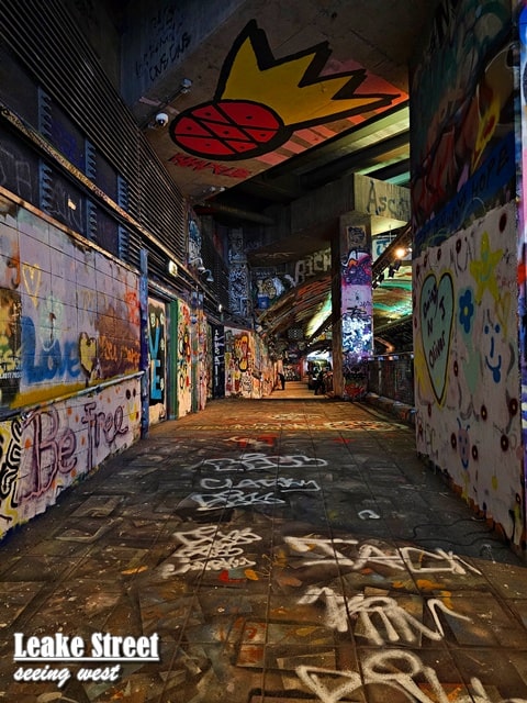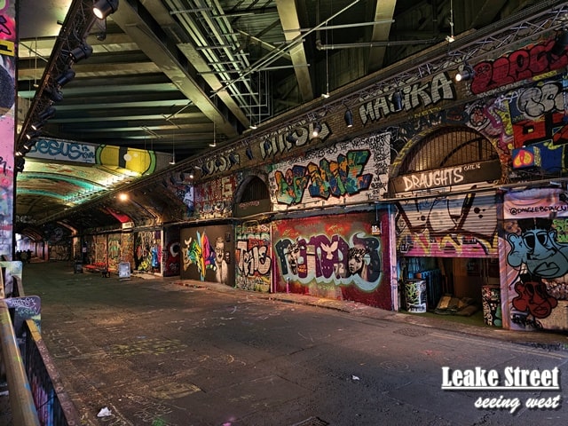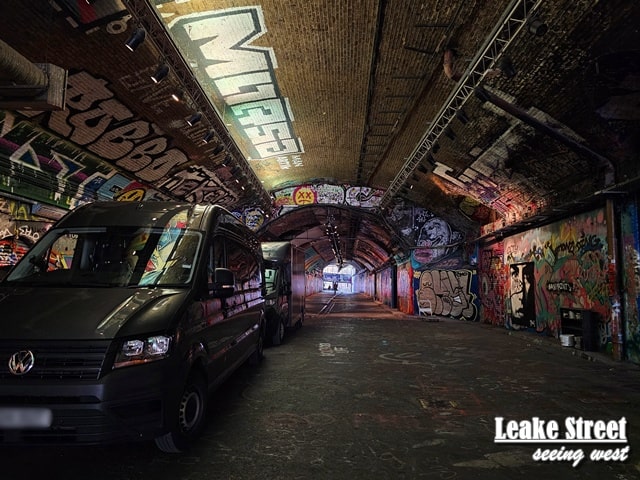 Leake Street 在成為塗鴉聖地之前,曾是一條用於火車貨物儲存和 Eurostar 列車在滑鐵盧設站時的主要車輛通道。自從Eurostar 搬遷到 St Pancras 國際車站後,這條隧道被荒廢,變成一條昏暗的行人通道。2008年,著名街頭藝術家Banksy在此舉辦了「Cans Festival」塗鴉藝術節,邀請世界各地藝術家自由創作,將整條隧道徹底點亮。該事件讓隧道自此成為合法塗鴉場所,也被譽為倫敦塗鴉文化的代表。