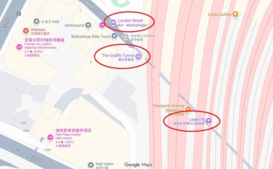 在google map 已標明「有著明塗鴉的公路隧道」、「The Graffiti Tunnel」、「London Street Art」,可見 Leake Street 已是一個官方認可而且已經成為地標景點的塗鴉場所。