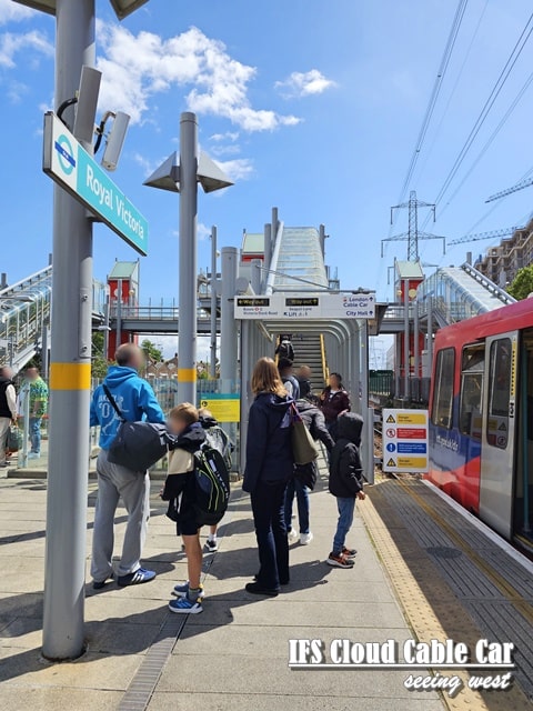 Royal Victoria 站行去纜車站不用5分鐘就見到纜車了,旁邊還有一個水上樂園Wakeup Docklands 可以玩滑水。