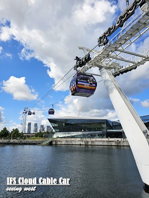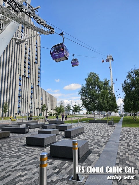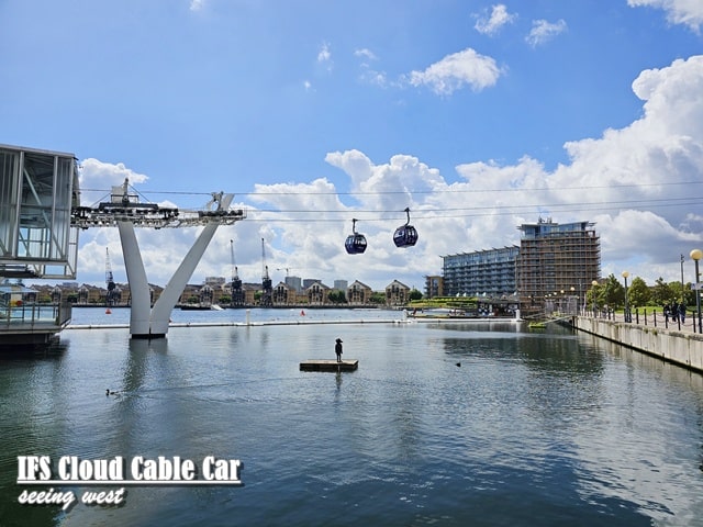 IFS Cloud Cable Car連接 Greenwich Peninsula(北) 同 Royal Docks(南),全長約 1 公里,車程約 10 分鐘。纜車高空穿越泰晤士河,途中可遠眺 O2 Arena、Canary Wharf、甚至天氣好時見到市中心摩天樓群。