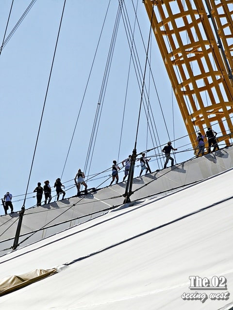 剛好看到有遊客光天化日之下爬到O2布幕頂。